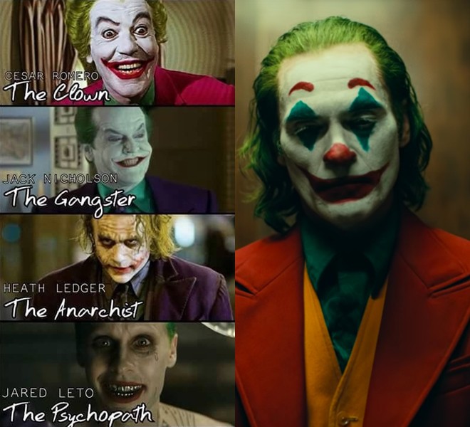 Vốn là phản diện của Batman nổi tiếng, Joker đã dần có một chỗ đứng riêng khi sở hữu tính cách nội tâm đặc biệt phức tạp và sự điên loạn đến rợn người. Trước bộ phim riêng Joker (2019) do Joaquin Phoenix thủ vai chính, màn ảnh rộng đã chứng kiến 4 phiên bản gã hề khác nhau do Caesar Romero, Jack Nicholson, Heath Ledgervà Jared Leto thủ vai.